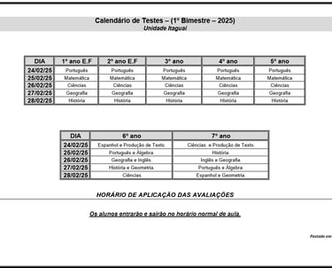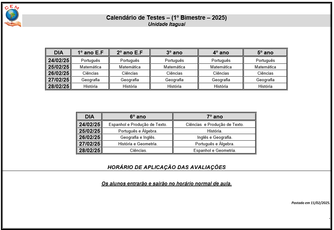 TESTES 1º BIMESTRE 2025 - UNIDADE ITAGUAI