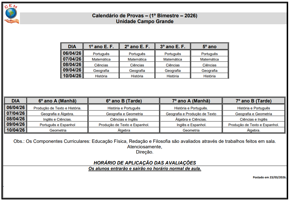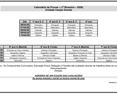 PROVAS 1º BIMESTRE 2026 - UNIDADE CG