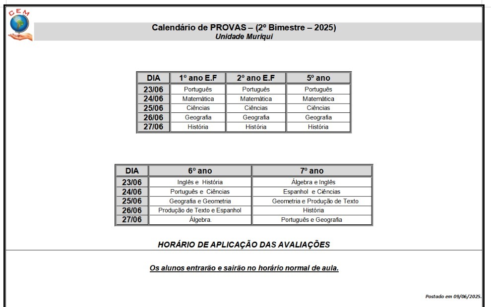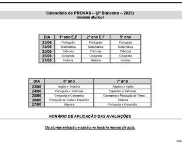 PROVAS 2º BIMESTRE 2025 - UNIDADE MURIQUI