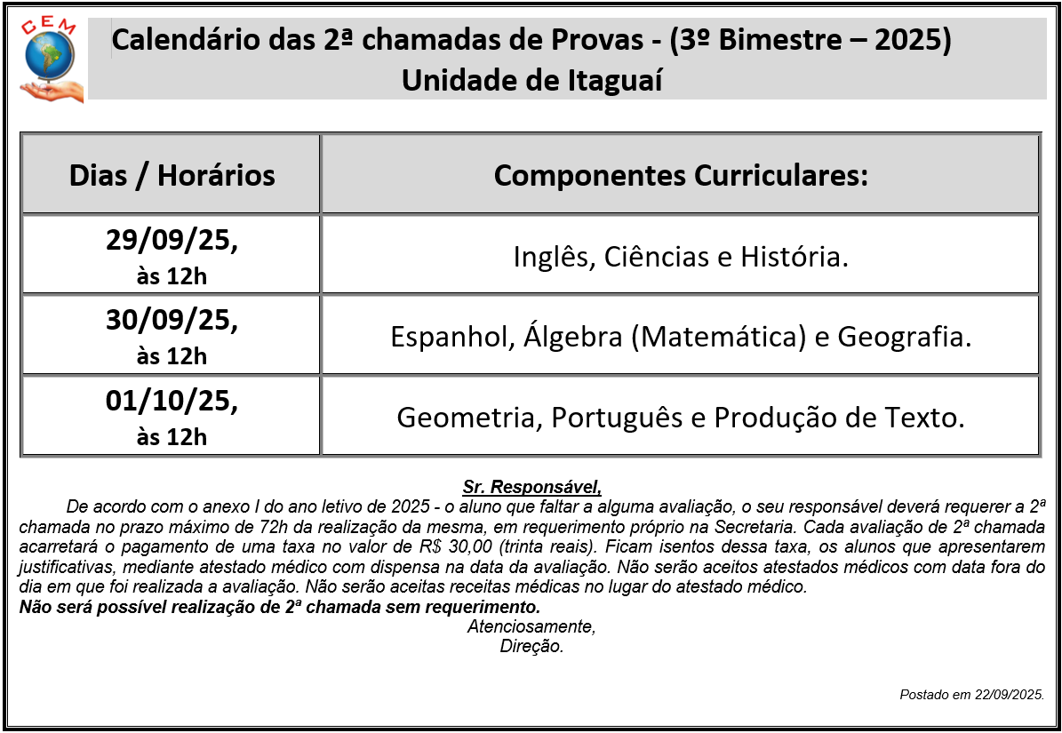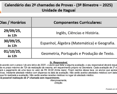 2ª Chamada de Provas 3B 2025 - Itaguaí