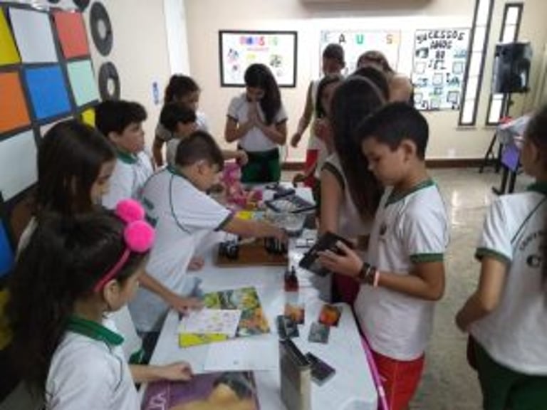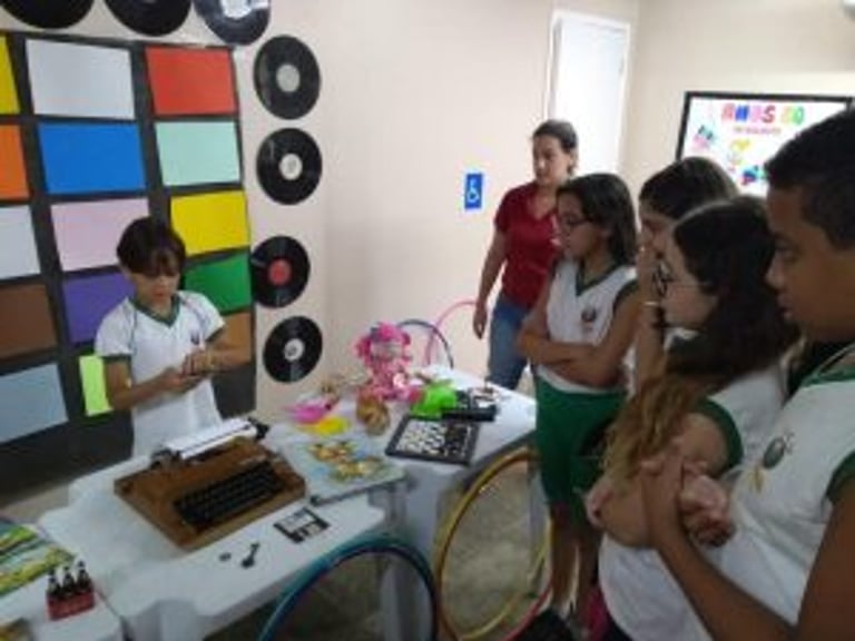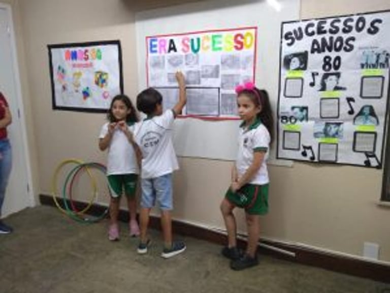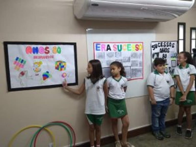 3º ano do Ensino Fundamental em aula prática: Corpo Humano. 2º, 3º e 4º ano E.F. em apresentação do Projeto Resgatando Memórias dos anos 80.