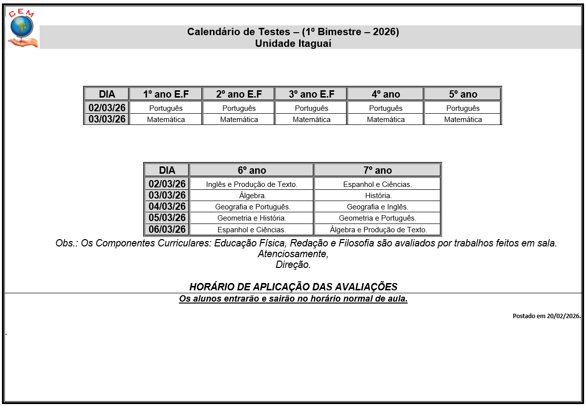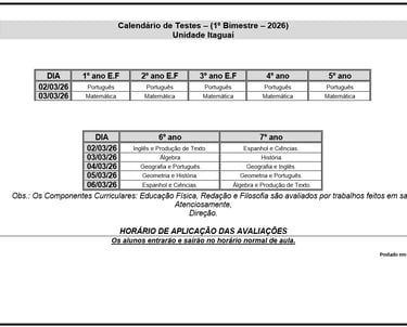 TESTES 1º BIMESTRE 2026 - UNIDADE ITAGUAI